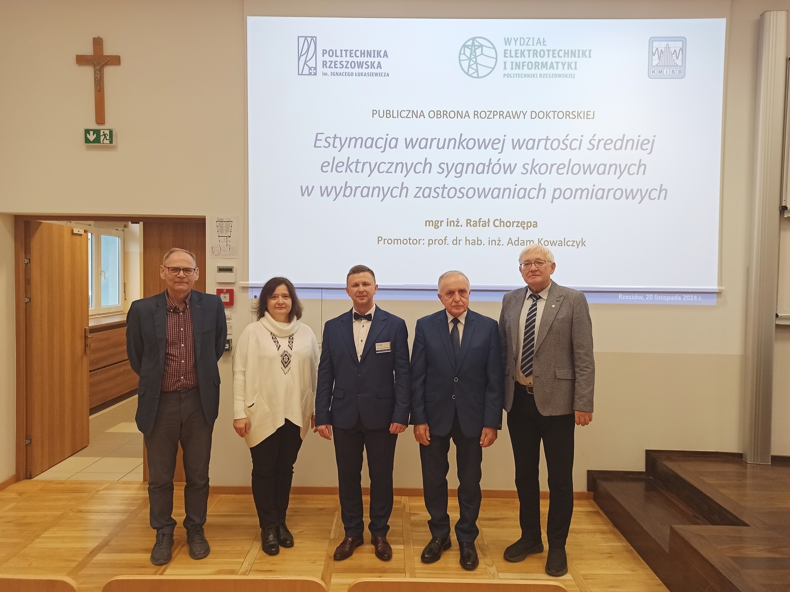 Rada Dyscypliny AEEiTK uchwałą nr 8/11/RDAEEiTK/2024 z dnia 20.11.2024 nadała mgr inż. Rafałowi Chorzępie stopień doktora w dziedzinie nauk inżynieryjno-technicznych w dyscyplinie naukowej automatyka, elektronika, elektrotechnika i technologie kosmiczne na podstawie rozprawy "Estymacja warunkowej wartości średniej elektrycznych sygnałów skorelowanych w wybranych zastosowaniach pomiarowych”. Promotorem doktoranta był prof. dr hab. inż. Adam Kowalczyk, a recenzentami w postępowaniu doktorskim byli: prof. dr hab. inż. Oleksandra Hotra