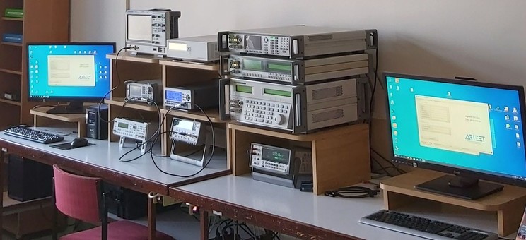 Stanowisko do wzorcowania częstościomierzy/czasomierzy zostało wszechstronnie przetestowane. Uzyskane wyniki testów potwierdziły wysoką dokładność i małą niepewność wyników wzorcowania zapewnioną przez atomowy rubidowy wzorzec częstotliwości, synchronizowany sygnałami odbieranymi z systemu GPS. Rezultaty obydwu wdrożeń zostały przedstawione przez dr. inż. Romana Tabisza i mgr. inż. Piotra Kubiszyna na XXIV Międzynarodowym Seminarium Metrologów MSM’2020, zorganizowanym przez naszą Katedrę 21 listopada 2020r. Aktualnie rozpoczęto prace wdrożeniowe na stanowisku do wzorcowania multimetrów elektronicznych oraz komputerowych kart pomiarowych. Stanowisko to zostało doposażone w grudniu 2020 roku w najnowszy multimetr referencyjny 8588A firmy FLUKE i jest aktualnie uzupełniane o aparaturę i oprogramowanie przeznaczone do wzorcowania i walidacji komputerowych kart pomiarowych.
