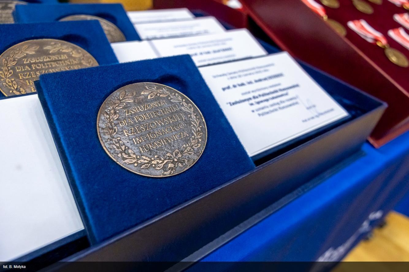 W dniu 3.10.2025r., podczas uroczystej inauguracji nowego roku akademickiego, dr inż. Anna Szlachta, prof. PRz została odznaczona honorowym wyróżnieniem nadawanym od 1976 roku wybitnym pracownikom oraz osobom spoza uczelni szczególnie zasłużonym dla Politechniki Rzeszowskiej - medalem "Zasłużonym dla Politechniki Rzeszowskiej im. Ignacego Łukasiewicza".