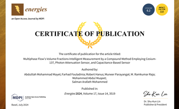 Dr hab.inż.Robert Hanus, prof.PRz współautorem artykułu "Multiphase Flowʼs Volume Fractions Intelligent Measurement by a Compound Method Employing Cesium137, Photon Attenuation Sensor, and Capacitance