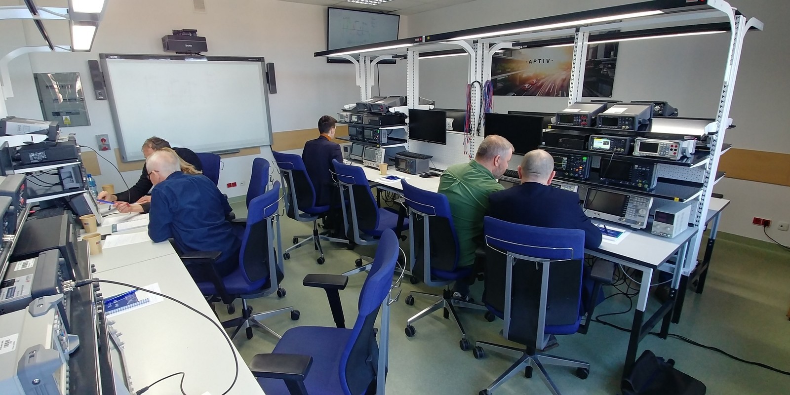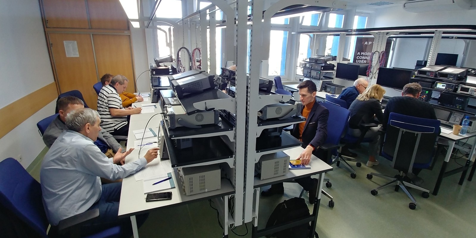 W dniu 20 marca 2025 w Laboratorium metrologii elektrycznej i elektronicznej A.211 w Katedrze Metrologii i Systemów Diagnostycznych odbyły się warsztaty doskonalące umiejętności praktyczne pod nazwą „Pomiary na oscyloskopie cyfrowym”. W zajęciach wzięli udział nauczyciele przedmiotów zawodowych szkół technicznych zrzeszonych w klastrze Wschodni Sojusz Motoryzacyjny: ZS im. por. Sarny w Gorzycach, ZST im. T. Kościuszki w Leżajsku, ZS im. ks. S. Staszica w Tarnobrzegu, ZST w Mielcu oraz ZS nr 2 im. E. Kwiatkowskiego w Nowej Dębie. Uczestnicy warsztatów nabyli praktyczne umiejętności konfigurowania generatora funkcyjnego, przygotowania oscyloskopu cyfrowego do pracy, nastawiania na generatorze sygnałów o zadanych parametrach oraz pomiaru wybranych parametrów sygnałów okresowych na oscyloskopie cyfrowym z wykorzystaniem różnych metod pomiarowych.