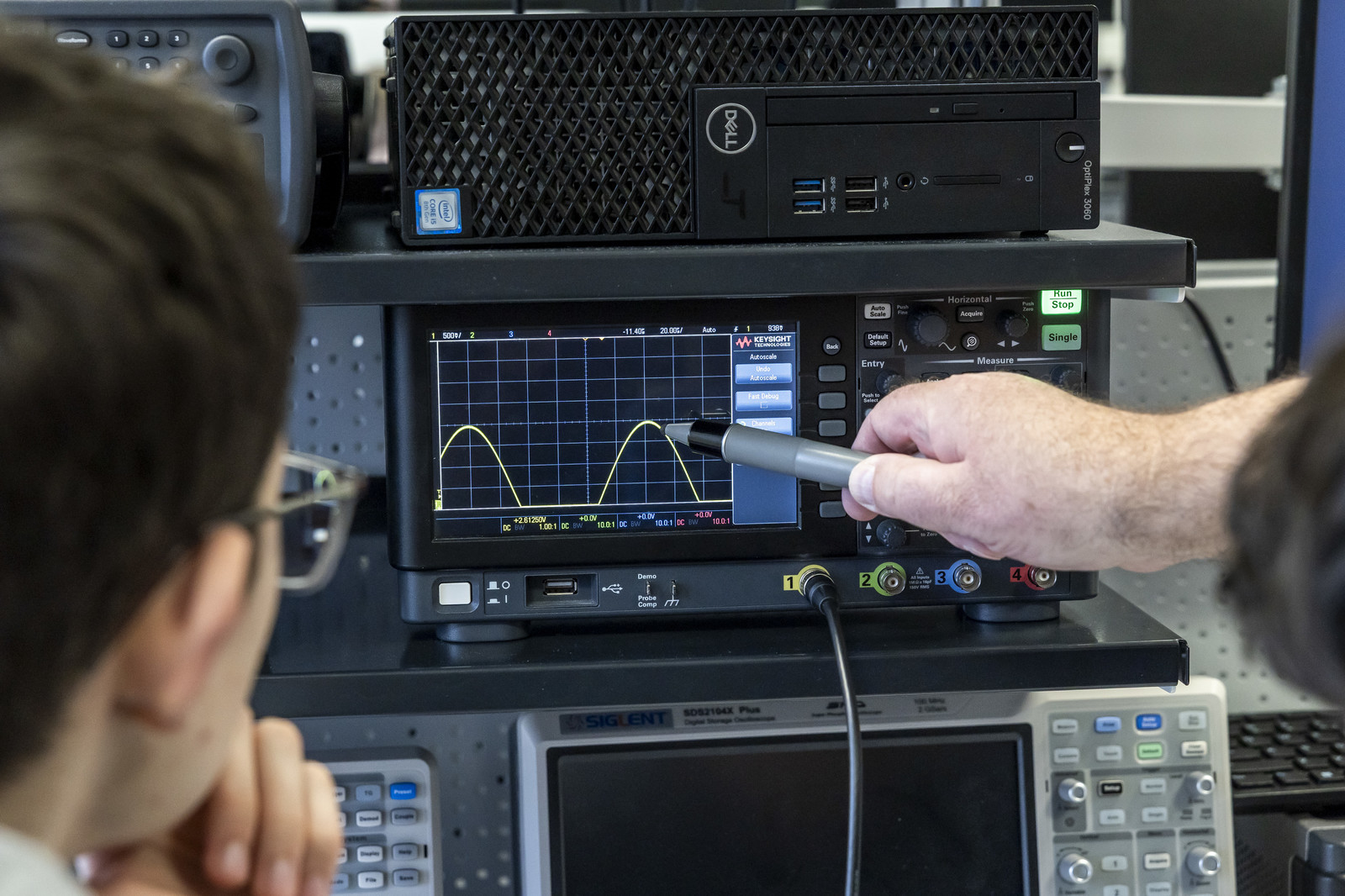 W dniu 27 marca 2026 w ramach Dnia Otwartego PRz odbyły się warsztaty pod nazwą „Pomiary na oscyloskopie cyfrowym”. W warsztatach uczestniczyli uczniowie klasy pierwszej ZSEn kształcący się w zawodzie „Technik elektryk”. Podczas zajęć uczniowie nabyli praktyczne umiejętności nastawiania na generatorze funkcyjnym sygnałów o zadanych parametrach, przygotowania oscyloskopu cyfrowego do pracy oraz pomiaru wybranych parametrów sygnałów na oscyloskopie cyfrowym z wykorzystaniem różnych metod pomiarowych.