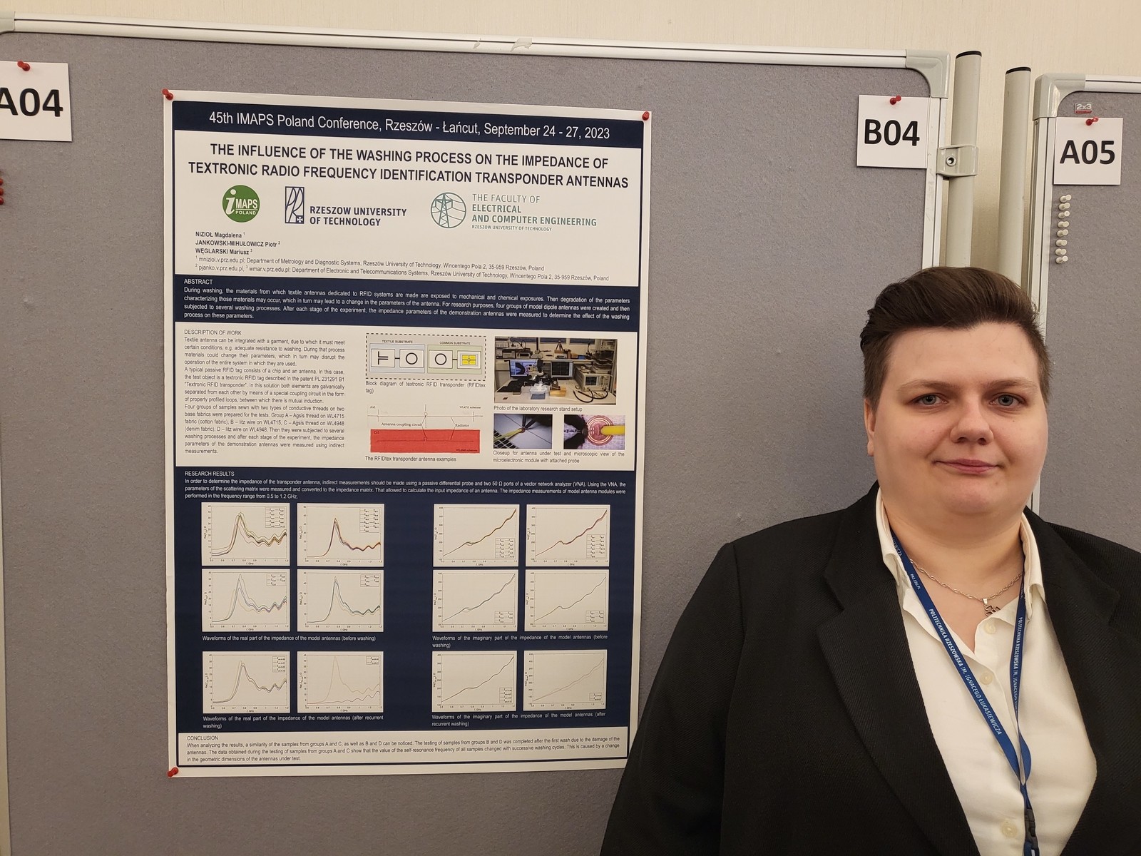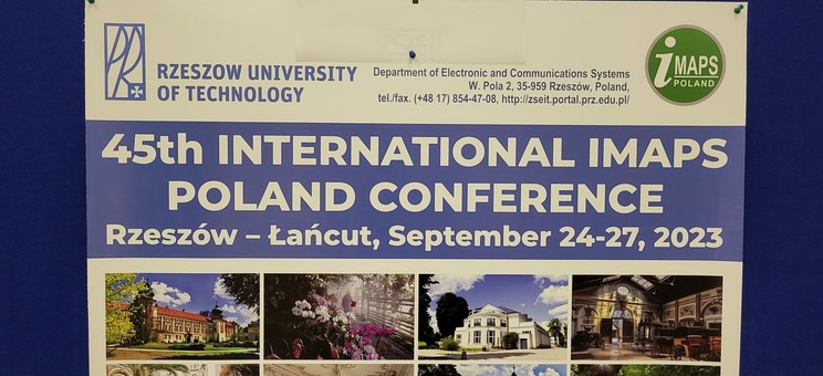 W dniach 24 - 27 września 2023 roku w Łańcucie odbyła się 45. międzynarodowa konferencja International Microelectronics and Packaging IMAPS Poland zorganizowana przez IMAPS Poland Chapter i Politechnikę Rzeszowską. Podczas konferencji mgr inż. Magdalena Nizioł odebrała nagrodę dla młodych naukowców za najlepszą prezentację podczas sesji plakatowej. Nagrodzona prezentacja nosi tytuł "The influence of the washing process on the impedance of textronic RFID transponder antennas".