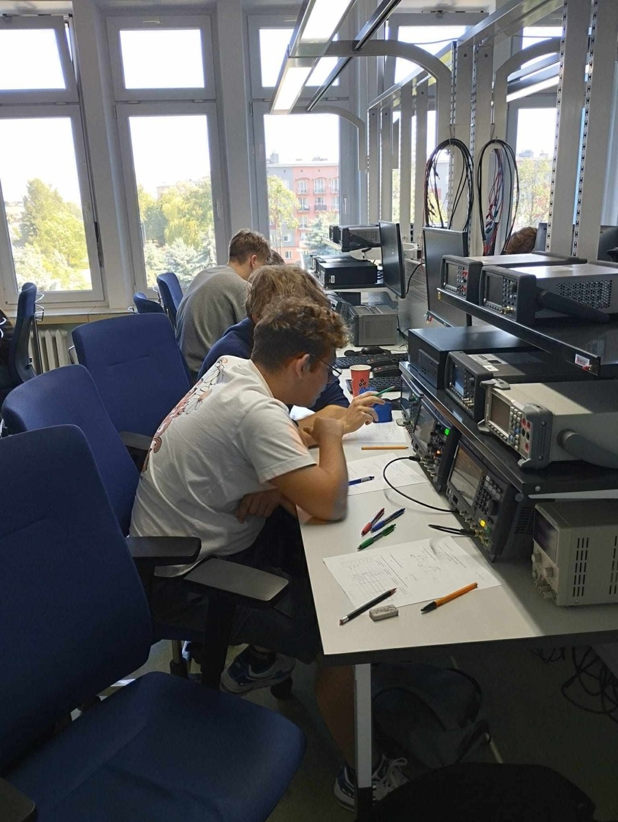 W dniu 17 maja 2024 w KMiSD odbyły się zajęcia warsztatowe zorganizowane dla uczniów IV Liceum Ogólnokształcącego im. Mikołaja Kopernika w Rzeszowie. Podczas spotkania osoby szczególnie zainteresowane fizyką miały okazję na doskonalenie swoich umiejętności obsługi oscyloskopu oraz poszerzenie kompetencji związanych z wykonaniem pomiarów napięcia i ustawianiem podstawy czasu.